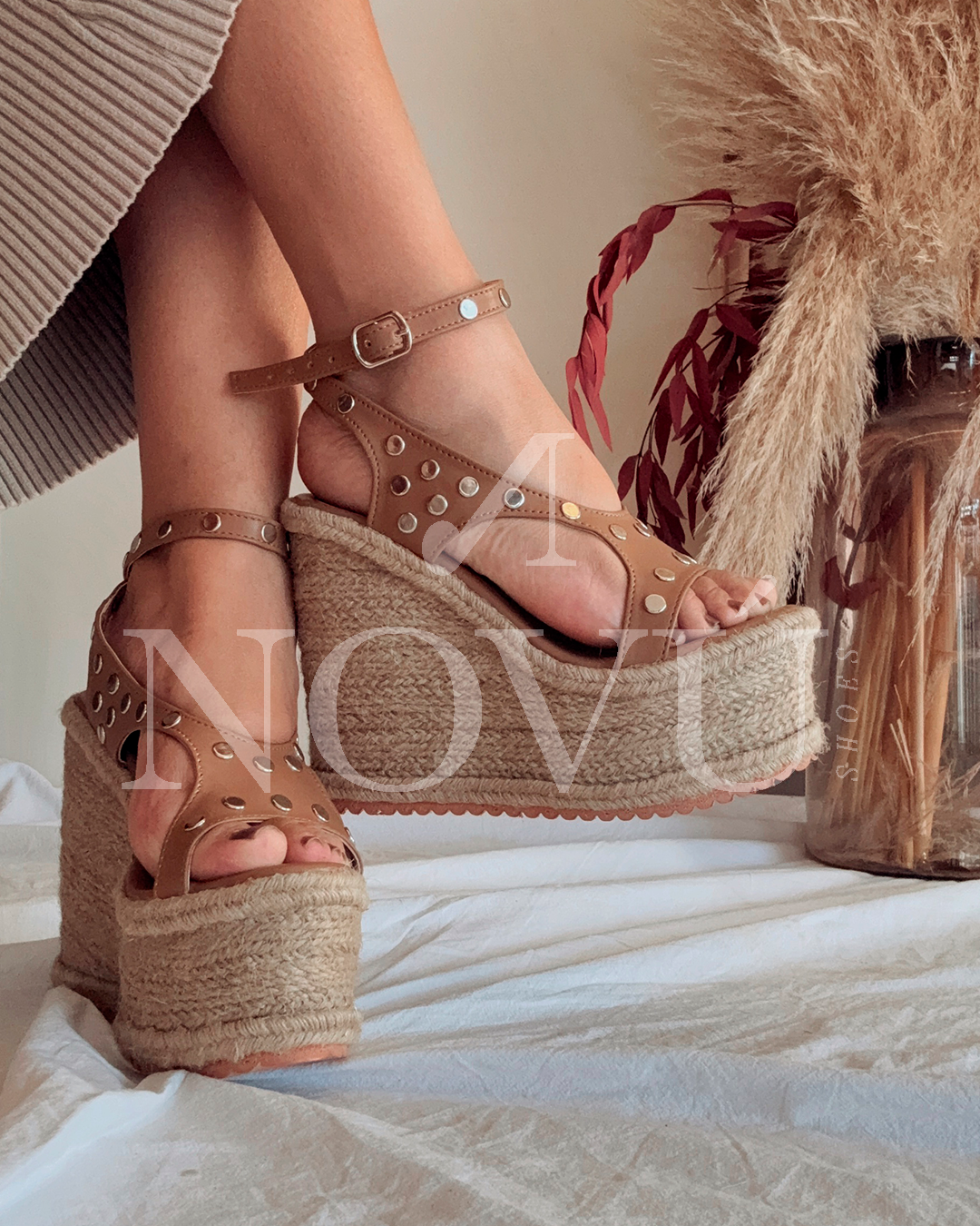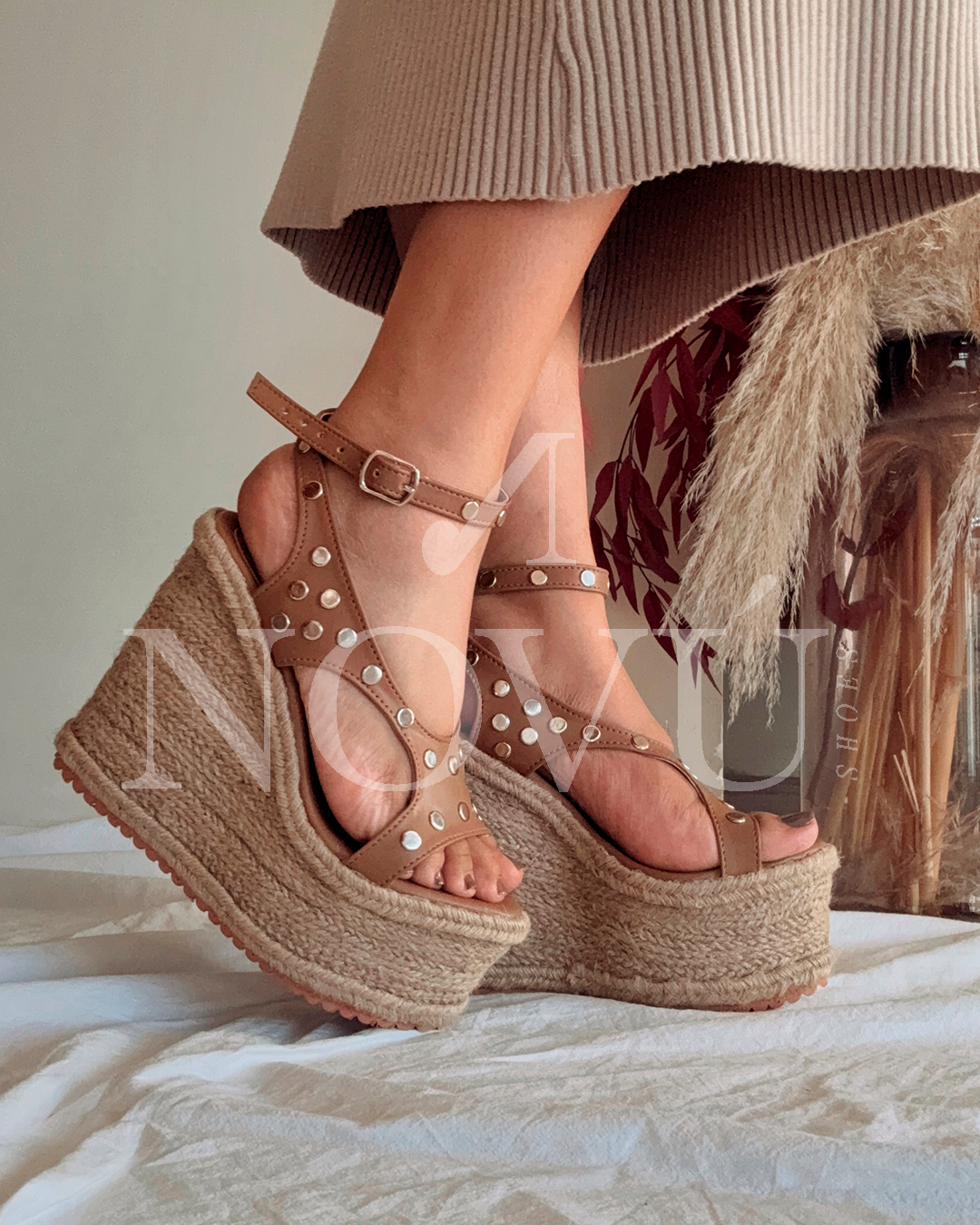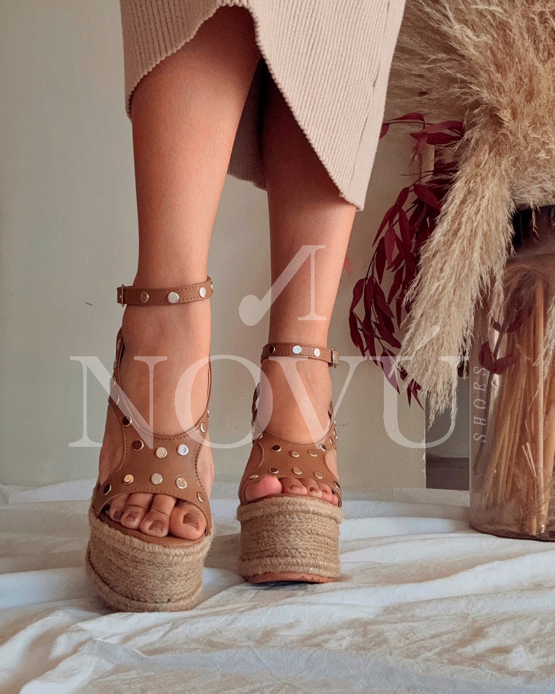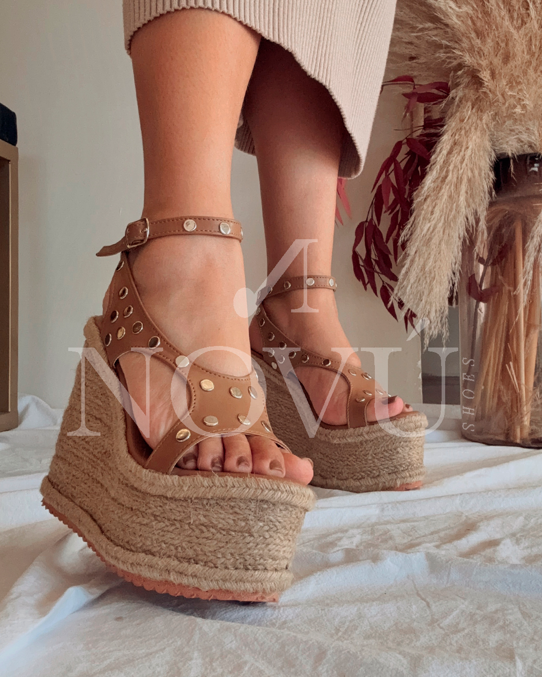 ✔ Material de capellada: Vinipiel camel con cortes estratégicos para estilizar visualmente el pie