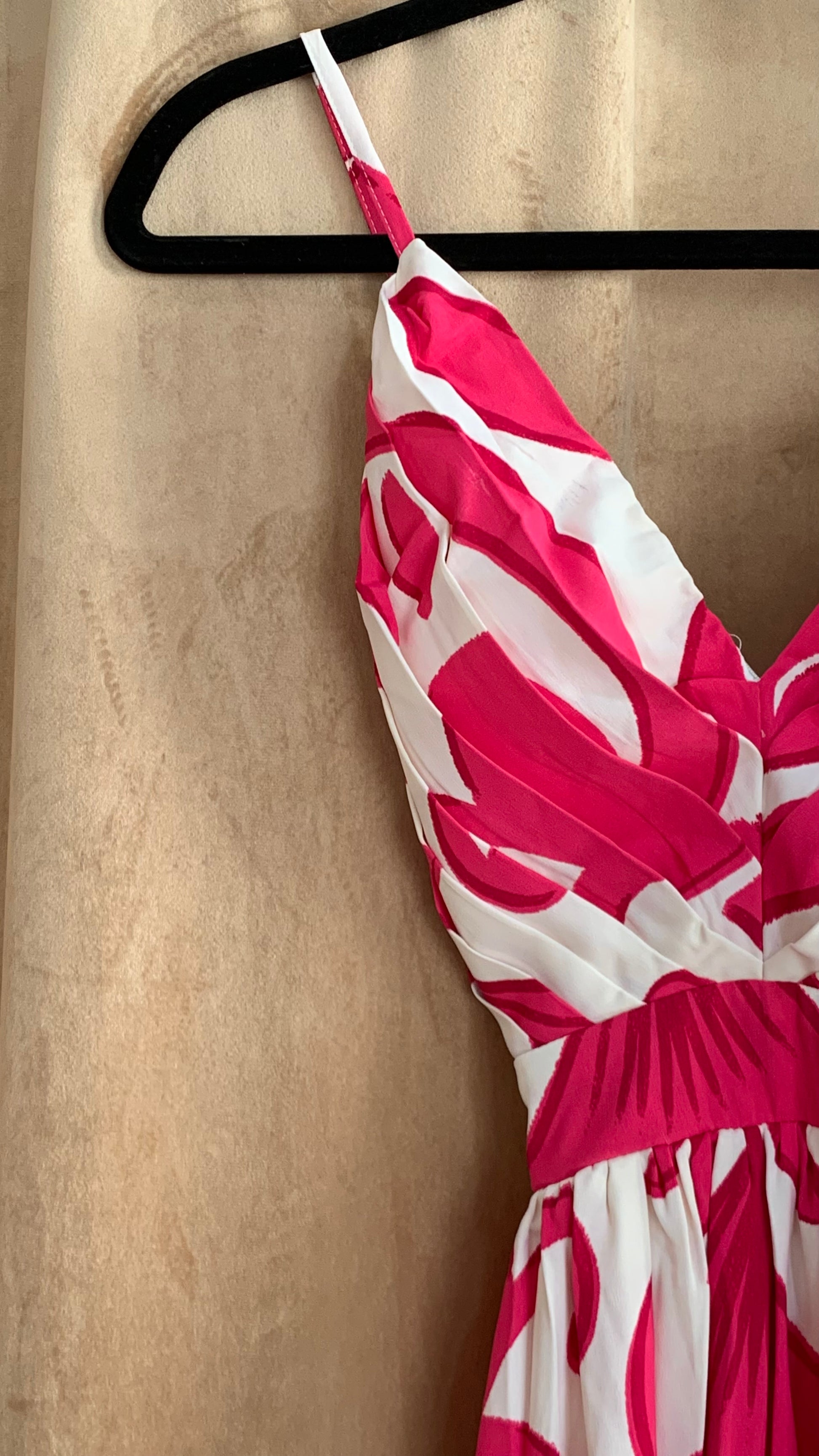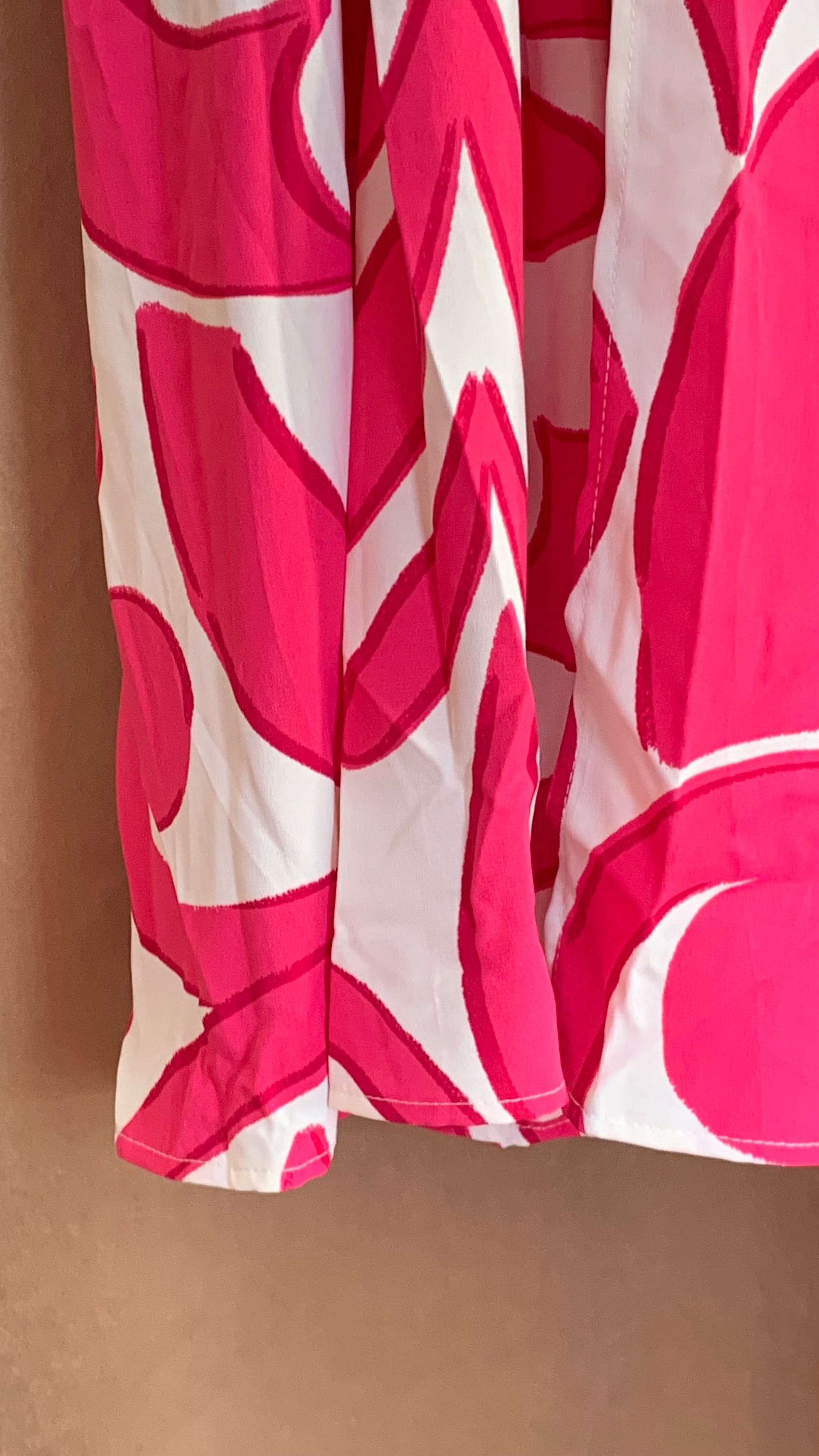 Vestido largo estampado fucsia con blanco